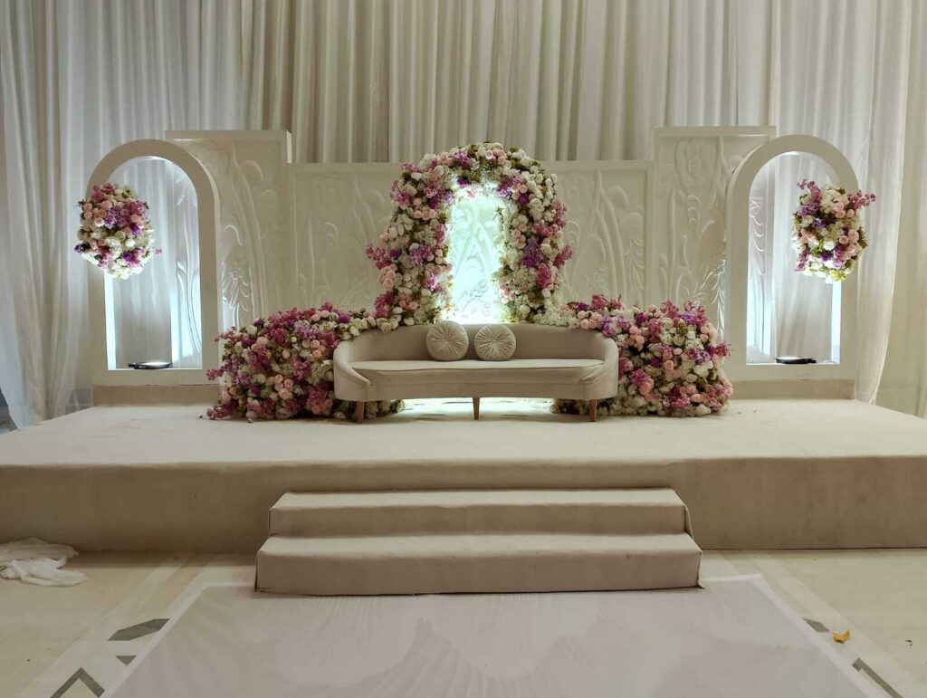 4- نقدم تأجير زينة أفراح متناسقة الألوان والديكور، مع اهتمام بالتفاصيل الدقيقة لإبراز جمال القاعات وخلق أجواء احتفالية راقية