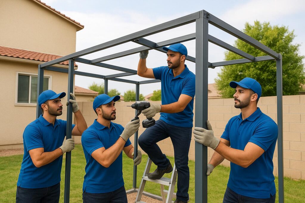 ✅ تنفيذ احترافي: فريقنا متخصص في تركيب المظلات والشينكو والكربي بدقة ومهارة عالية لضمان نتائج متينة ومرتفعة الجودة تلبي توقعات العملاء.